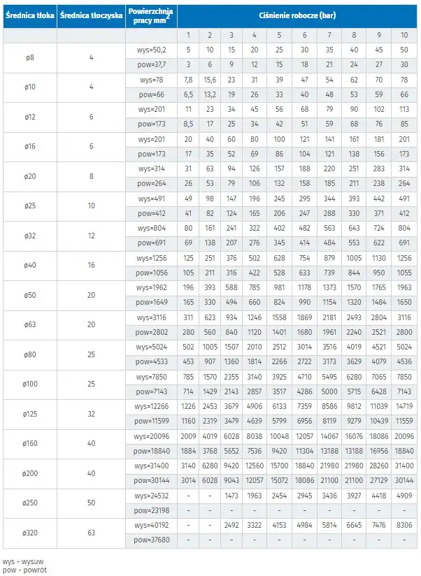 Таблица усилий пневматических цилиндров